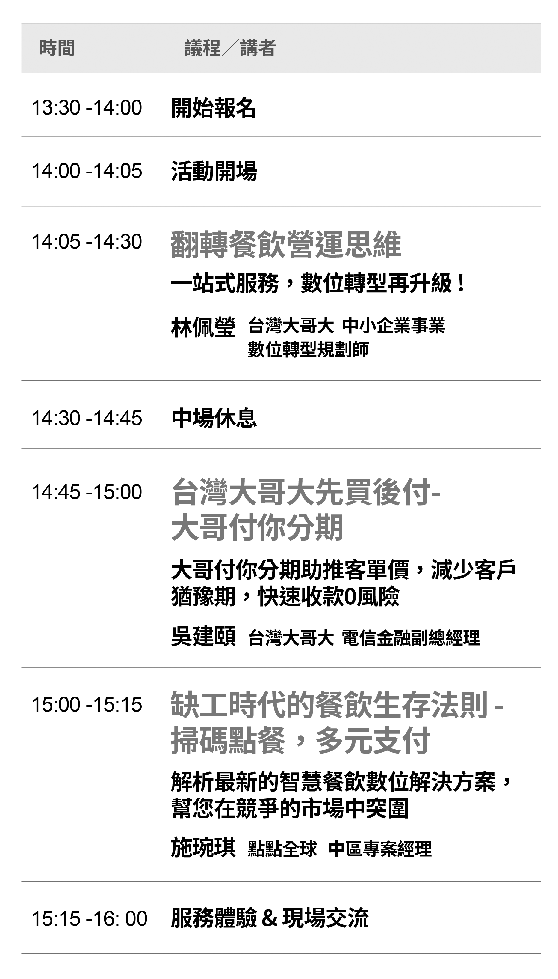 隨著數位轉型與 AI 技術快速發展,中小企業該如何突破人力與成本的限制?台灣大哥大中小企業服務為您打造一系列實戰講座,服務北中南的業主們。我們將聚焦 AI 應用、智慧經營與品牌升級,助您搶得市場先機!