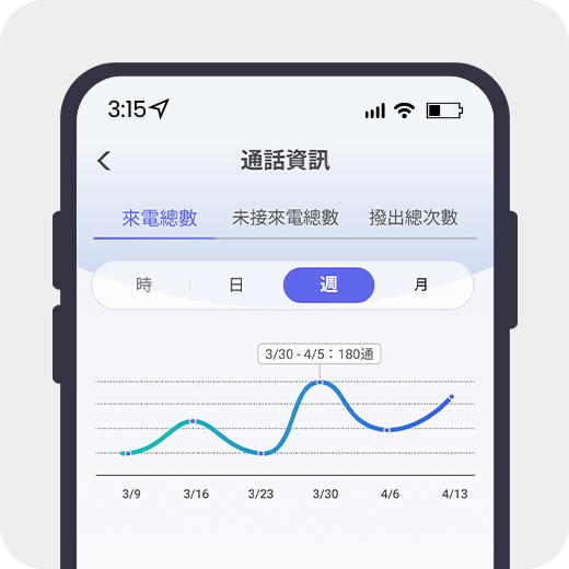 不僅提供當日、周、月報表資訊,店家登入可一目瞭然所有的通話資訊。未來更會加入提醒與分析,請拭目以待。