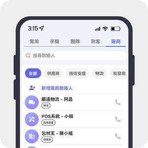 自動整理常用聯絡人,依據店家需求選用標籤分類。讓來電一目了然,熟客一秒識別,提供專屬又精準的服務。