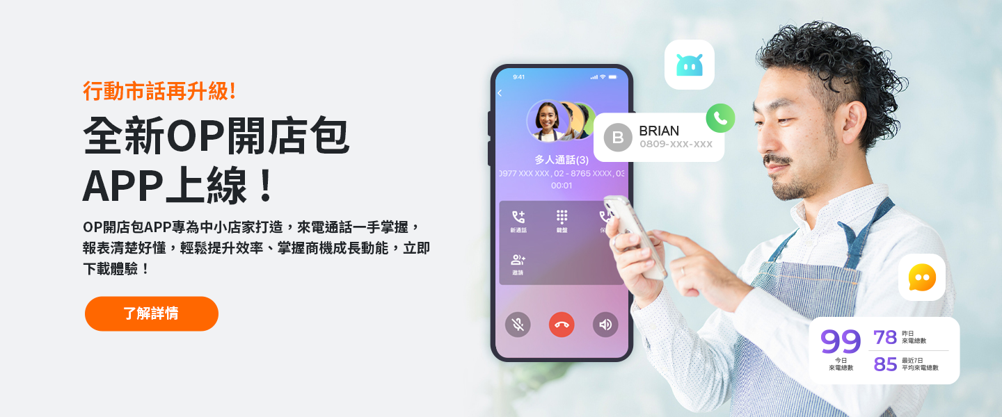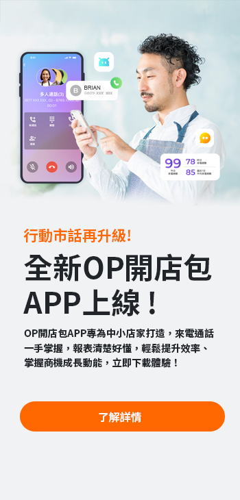 因店家需求不同,我們也提供了方案彈性,讓品牌經營者可以根據需求,挑選 OP 開店包 的服務組合,如:行動市話+店家寬頻,若後續想要升級或是加購其他服務,也能輕鬆輕 鬆調整。若想進一步了解方案內容,歡迎預約我們的 數位轉型顧問 或直接撥打 免費客服 專線: 0809-000-809 轉「3」