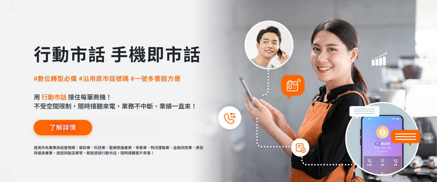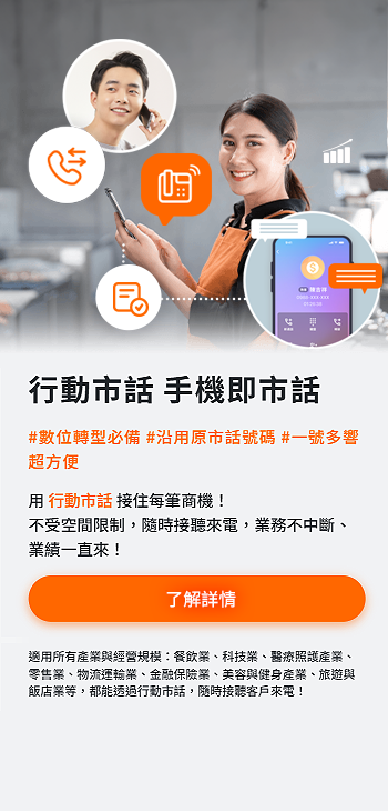 更方便的是,若 已有使用市話號碼 的店家,也能無痛轉移!不需要變更既有的電話號碼,直接沿用現在的店家代表號,就能導入行動市話!